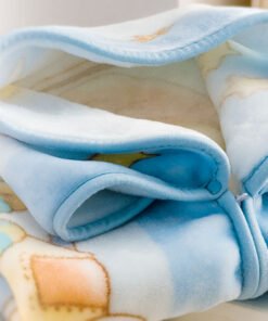 | Kleur en motief | beige/olifant, blauw/dieren, groen/beertjes in een luchtballon, roze/beertje |
